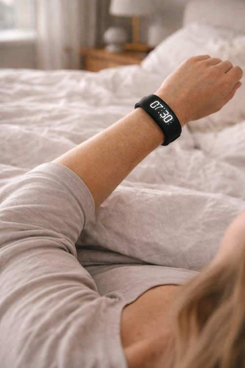 RiseX WakeBand delivers reliable wake-ups through wrist vibration - completely silent for others.